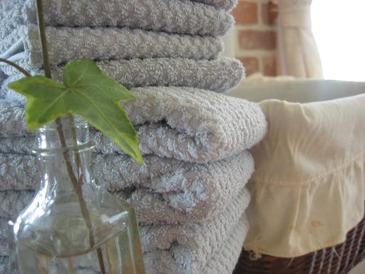 キッチン・洗面所・お風呂で使うタオルは絶対「無地」、しかもホワイト系と決めています!