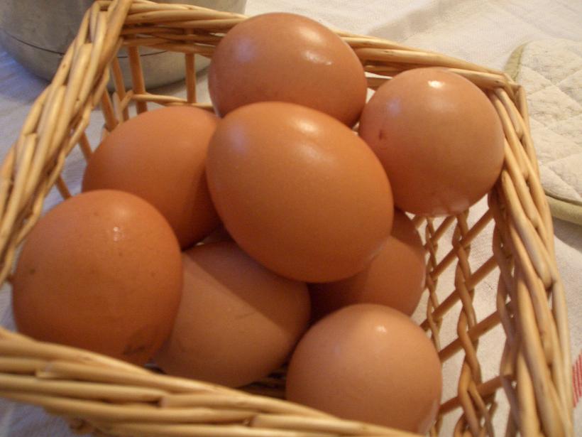 そうそう、卵っていつも割って食卓へ出していたけど、こうやって籠に入れて出してもいいかも~(^^