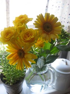 なんだかんだと迷うこと数分、選らんでくれたのが黄色の花束!
